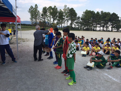 古枝少年団を始め、鹿島地区・佐賀県サッカー界に多大なる功績を残された向井一由先生。挨拶では「鹿島地区からもJリーガーが出ている。皆さんもプロを目指して頑張れ!」と激励されました。